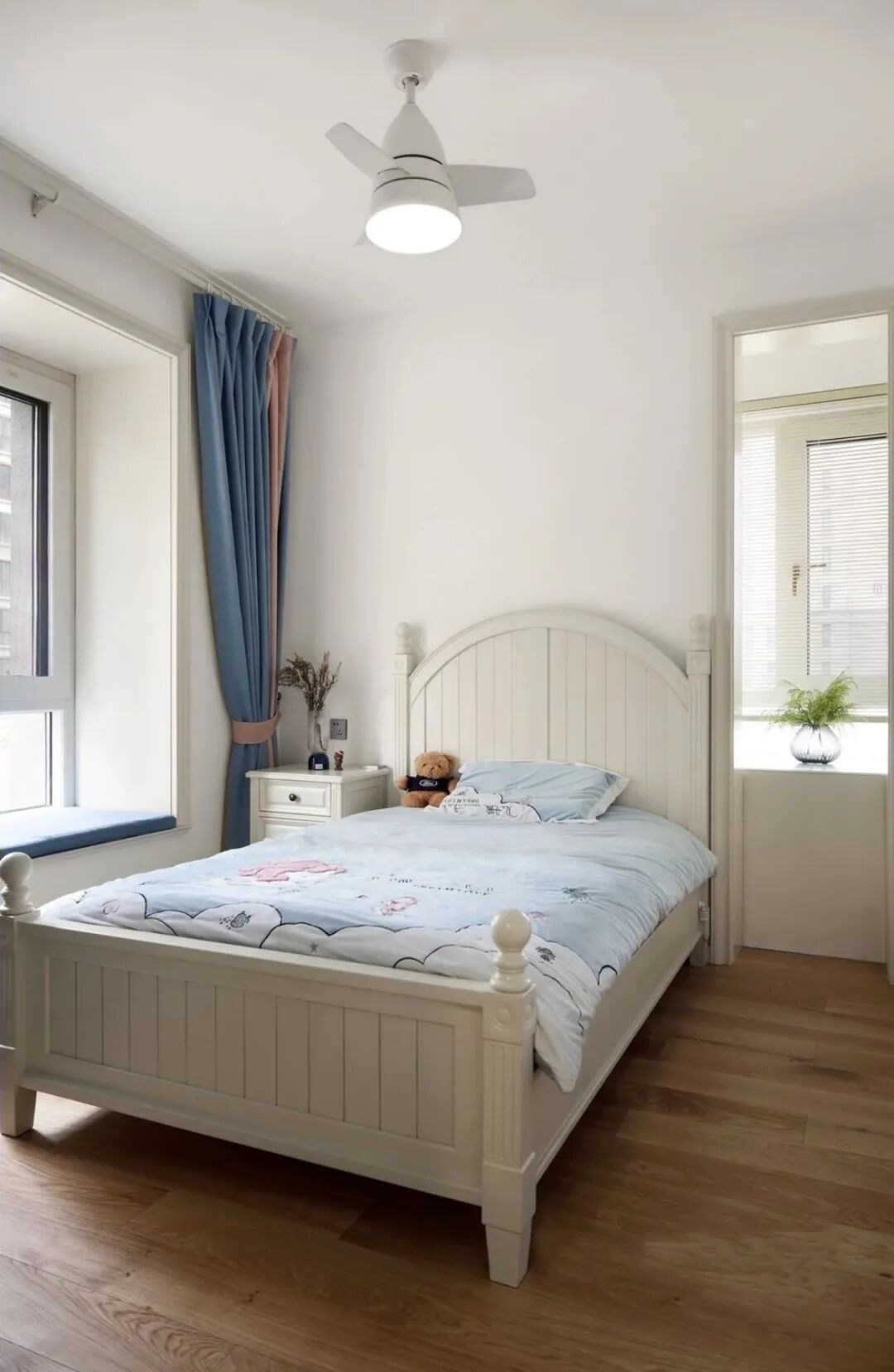 儿童房的色调清新自然,白色墙面搭配粉蓝窗帘让色彩更加丰富饱满,给空间带来更多的明亮感和温暖感,仿古白的床复古优雅搭配原木色宅男视频污地板,不过分堆砌和装饰,简洁又在细节处能品味出小主人的活泼可爱,而宅男在线视频E0级拉丝工艺地板,更环保、更温暖,更能呵护小主人健康成长。
